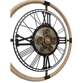Relógio de Parede Redondo 60cm com Engrenagens Visíveis e Números Romanos Design Industrial Elegante