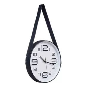 - Material relógio: Plástico - Material da Corda: Alça de couro sintético - Silencioso, ponteiro continuo; - Medida relógio: 30 cm x 30 cm x 4,1 cm; - Altura entre Relógio e Alça: 25 cm - Utiliza 1 pilha AA (Não inclusa);