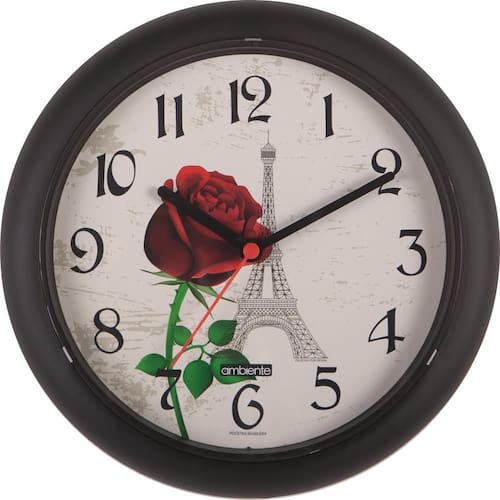 Cor da Base: Preto Mostrador: Com Números e desenho da Torre Eiffel e Rosa Ideal para decoração de ambientes