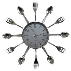 Relógio de Parede Cromado - Design de Talheres (Garfo e Colher)