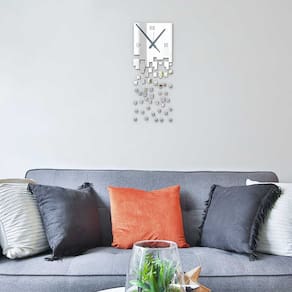 Relógio de parede para sala, cozinha, sala de estar ou onde desejar. A fixação é feita por fita dupla face em superfícies lisas como azulejos, parede, gesso, madeira, painéis e afins. Pode ser fixado da maneira que desejar ou como na imagem. - Produto: Relógio de Parede Espelhado 1 peça Miolo de pendurar - Características: Corte feitos com perfeição Acrílico virgem de alta qualidade Nunca amarela - Diferente dos outros materiais Produzido pela Visual Laser Acrílicos - Tamanho: Montado: aproximadamente 30 cm de altura por 20 cm de largura - Material: Acrílico Cast 100% Virgem - Garantia Garantimos que seu produto chegará livre de defeitos e conforme opção escolhida Trocamos seu produto em caso de quebra no transporte O produto acompanha uma película de proteção, que deve ser retirada pelo cliente.