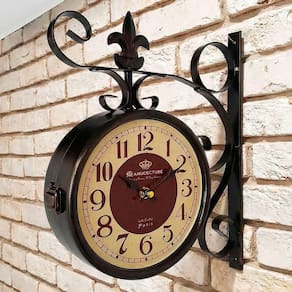 Características Gerais do Produto: - Material: Metal - Modelo: Relógio Dupla Face - Cor: Preto - Dimensões aproximadas: Altura 35cm x Largura 30cm x Diâmetro 19,5cm - Potência: 1,5v Garantia: - Garantia contra no