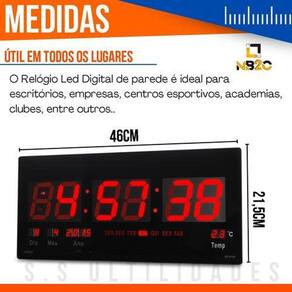 Relógio parede led digital grande 46cm termômetro data temperatura