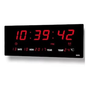 Relógio De Parede LED Digital Características do produto: Excelente nitidez Cor dos Leds: Vermelho Tensão da fonte: 110v / 220v Bivolt Ajuste fácil, através dos botões na parte inferior traseira Marca a hora/minutos/segundos, dia do mês/mês/ano, dia da semana, temperatura Hora: 12/24h Sistema eletrônico de quartz Possui bateria interna para manter memória em caso de falta de energia bateria não incluida Visor de led proporciona visibilidade nítida no escuro Cor do Relógio: Preto Dimensões aproximadas do produto: Comprimento: 36 cm Altura: 15 cm Largura: 3 cm Itens Inclusos: 1 Relógio com visor de LED 1 Fonte de energia bivolt Marca: Não Informado
