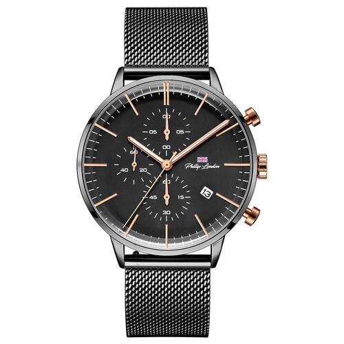 Relógio Philiph London Masculino Ref: Pl80251613m Pr N Cronógrafo Black DESCRIÇÃO DO PRODUTO: Caixa de Metal Pulseira de Malha de Aço Mesh Vidro de Cristal Mineral Fundo de Pressão Resistente à Água 5 Atm Diâmetro / Largura da Caixa: 42.00 MM Funções: Analógico, Cronógrafo, Calendário Design Inglês Estilo: Esporte Fino Alimentação do Maquinário: Bateria Garantia de 1 ano