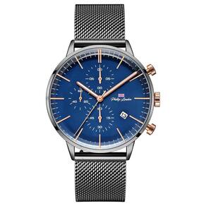 Relógio Philiph London Masculino Ref: Pl80252613m Az N Cronógrafo Grafite DESCRIÇÃO DO PRODUTO: Caixa de Metal Pulseira de Malha de Aço Mesh Vidro de Cristal Mineral Fundo Resistente à Água 5 Atm Diâmetro / Largura da Caixa: 42.00 MM Funções: Analógico, Cronógrafo, Calendário Design Inglês Estilo: Esporte Fino Alimentação do Maquinário: Bateria de 1 ano Ean: 7897033047880