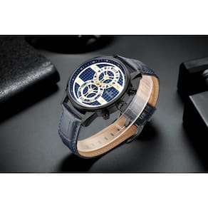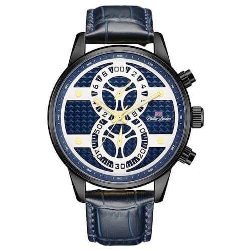 Relógio Philiph London Masculino Ref: Pl80300612m Az N Cronógrafo Black DESCRIÇÃO DO PRODUTO: Caixa de Metal Pulseira de Couro Vidro de Cristal Mineral Fundo Resistente à Água 5 Atm Diâmetro / Largura da Caixa: 46.00 MM Funções: Analógico, Cronógrafo Design Inglês Estilo: Esporte Fino Alimentação do Maquinário: Bateria de 1 ano Ean: 7897033048337