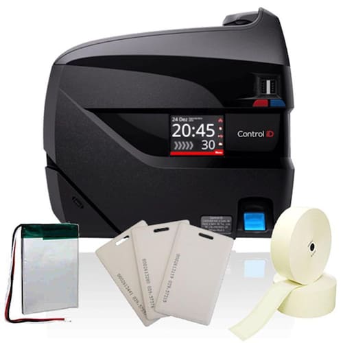 Relógio Ponto Idclass, Nobreak, 2 Bobinas E 10 Cartões Um sistema de gerenciamento inteligente, design inovador, tamanho compacto e resistente, o Relógio de Ponto iDClass proporciona ao usuário um registro de ponto seguro e eficaz através de sua memória inviolável. Possui 3 opções de identificação: Biometria, Proximidade e Senha. Com capacidade para 15mil digitais e 15mil usuários cadastrados, tem mecanismo impressor térmico de alta velocidade com guilhotina, compatível com bobinas de 300 metros, com durabilidade mínima de 5 anos as impressões dos comprovantes de registro, com bateria nobreak com autonomia de até 4h dependendo do fluxo de uso, é um relógio certificado pelo Inmetro e homologado pelo Ministério do Trabalho portaria 1.510/2009. Especificações complementares: Tela LCD Touchscreen TFT colorido de 2.4 Tela resistiva sensível ao toque Alimentação elétrica: Bivolt 110 - 220 V Dimensões Altura x Largura x Profundidade : 246 x 246 x 104 mm Peso: 750 g sem bobina ou 1 kg embalado Garantia do fabricante de 18 meses - Garantia Balcão. Bateria nobreak de uso interno e embutido no produto Cartão proximidade com frequência 125Khz Todo Relógio de Ponto Eletrônico necessita de software para gerenciamento das informações coletadas. O software para controle de ponto não acompanha o produto.