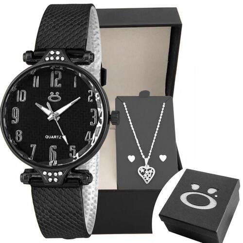 Relogio Preto Aço Feminino + Brinco Coração Colar + Caixa Qualidade Premium Presente Black Piano Relógio e Acessórios Femininos Orizom - Modelo Maria - Elegância e Qualidade Premium Detalhes do Produto: