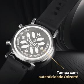 ### 1. Relógio Feminino Analógico - Modelo Maria - Maquinário com pintura eletrostática, de alta durabilidade. - Mostrador preto com acabamento black piano e detalhe de pedrinha de strass transparente. - Pulseira preta em silicone ajustável, adaptável a qualquer dimensão de pulso, garantindo conforto e estilo. - Tampa traseira blindada com arte exclusiva da Orizom, assegurando autenticidade. DESTAQUE-SE COM ESTE RELÓGIO ELEGANTE E AUTÊNTICO!