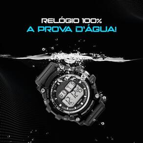 Relogio prova dagua digital masculino preto + caixa data presente cronometro não perca a oportunidade de garantir o futuro da cronometragem com o relógio digital masculino orizom spaceman x seu equilíbrio perfeito entre estilo, funcionalidade e desempenho o torna o acessório ideal para acompanhar o ritmo acelerado da vida moderna. Com sua cor todo preta e resistência à água, este relógio transmite elegância e sofisticação, podendo ser utilizado em qualquer ocasião, desde encontros casuais até atividades ao ar livre. Além de seu visual impressionante, este relógio é construído para resistir aos desafios do dia a dia, oferecendo um alarme integrado, cronômetro preciso e exibição de data, mantendo você sempre atualizado e pontual. A luz de led brilhante garante máxima visibilidade em qualquer condição de luminosidade, enquanto a pulseira de silicone ajustável proporciona conforto excepcional e durabilidade. Adquira o relógio digital masculino orizom spaceman x e esteja no controle do seu tempo e estilo de vida. Acompanha caixa ultra premium para armazenamento seguro e elegante do seu relógio. Garanta já o seu