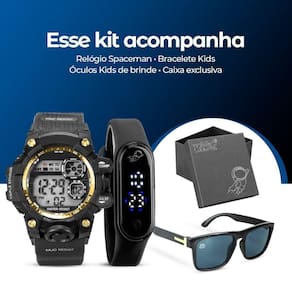 Kit Orizom Kids - Relógios Digitais, Óculos de Sol e Caixa Premium ExclusivaChegou o Kit Orizom Kids perfeito para crianças a partir de 5 anos que adoram estilo e funcionalidade. Este conjunto incrível conta com dois relógios digitais infantis, um óculos de sol com proteção UV e uma caixa premium exclusiva, ideal para as aventuras dos pequenos.Conteúdo do Kit: 1 Relógio Digital Infantil Preto com Dourado à Prova d'Água Orizom Kids com Pulseira de Silicone Ajustável: Este relógio é perfeito para crianças ativas, sendo à prova d'água e com uma pulseira de silicone ajustável para um ajuste confortável. 1 Relógio Digital Infantil Preto Orizom Kids em Formato de Bracelete de Silicone Ajustável: Com um design moderno de bracelete, este relógio é uma declaração de estilo e também possui pulseira de silicone ajustável. 1 Óculos de Sol Preto Orizom Kids com Proteção UV: Proteja os olhos dos pequenos com estilo usando esses óculos de sol preto da Orizom Kids, que oferecem proteção UV para brincadeiras ao ar livre com segurança. 1 Caixa Premium Exclusiva Orizom Kids: Todos esses itens incríveis vêm em uma caixa premium exclusiva da Orizom Kids, tornando este kit um presente impressionante para crianças especiais.Este Kit Orizom Kids é a combinação perfeita de moda e funcionalidade para as crianças. Deixe-as expressar seu estilo único enquanto mantêm um visual seguro e elegante. Adquira já e proporcione estilo e proteção para os pequenos!