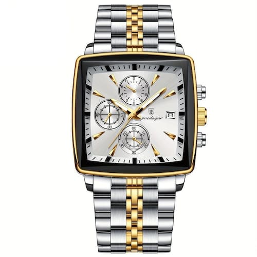 Especificações: [Faixa etária aplicável] Este relógio é ideal para homens que desejam um toque de elegância em seu dia a dia. [Material da correia] Feito de aço inoxidável, garantindo durabilidade e um brilho que se mantém impecável ao longo do tempo. [Material do estojo de relógios] Possui caixa feita de liga, proporcionando resistência sem abrir mão do design sofisticado. [Estilo e Movimento] Com um design elegante e o confiável movimento de quartzo, este relógio combina estilo com precisão. [Fonte de energia] Este relógio é alimentado por uma bateria tipo botão, assegurando funcionamento contínuo e de baixa manutenção.
