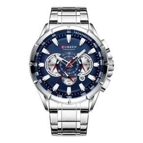 Relógio clássico e estético: A caixa de liga e a pulseira de aço inoxidável e fundo Azul compõem uma aparência elegante.