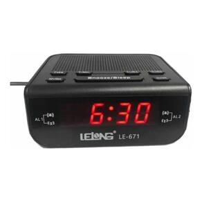 Relógio Rádio Digital Despertador Alarme Duplo Lelong Le-671 Relógio Despertador Digital Elétrico De Mesa Radio Am FmFácil de utilizar Definição simples do relógio para configurar a hora e o alarme sem necessitar de instruções- Regulagem de luminosidade Acorde ao som da sua estação de rádio favorita ou de um alarme Temporizador para adormecer ao som da sua música favorita Repetição do alarme para dormir mais um pouco Pilha de reserva assegura a conservação da memória da hora durante falhas de energia a função da pilha não é ligar o relógio, e sim assegurar a conservação da memória O visor amplo permite uma fácil leitura do conteúdo no ecrã. Agora, pode ver as horas e o alarme facilmente, mesmo à distância. Ideal para pessoas de idade mais avançada ou com problemas de visão.Sintonizador FM/MWSintonizador estéreo FM/MW AM Definição simples do relógioA hora e o alarme são tão fáceis de configurar que provavelmente nem será necessário consultar o Manual de início rápido ou as Instruções de utilização. Basta observar os botões do rádio relógio para definir a hora e o alarme.Acorde com o rádio ou aviso sonoroDesperte ao som da sua estação de rádio favorita ou de um sinal sonoro. Defina o alarme no seu rádio relógio Lelong para acordar com a estação de rádio que ouviu por último ou escolha acordar com um sinal sonoro. Quando chegar a hora de despertar, o rádio relógioAlarme duploO sistema de áudio inclui duas horas de alarme diferentes. Defina uma hora de alarme para o acordar e outra hora de alarme para acordar outra pessoa.Repetir AlarmePara evitar que adormeça e se atrase, função de repetição do alarme. Se o alarme tocar e quiser dormir mais um pouco, basta premir uma vez o botão de repetição do alarme e voltar a dormir. Nove minutos depois o alarme volta a tocar. Pode continuar a premir o botão de repetição do alarme a cada nove minutos até o desligar totalmente.Temporizadoro temporizador permite-lhe decidir durante quanto tempo pretende ouvir música - ou uma estação de rádio à sua escolha - antes de adormecer. Basta definir um limite de tempo até 1 hora e escolher uma estação de rádio para ouvir enquanto adormece. Ean: 7894652429448