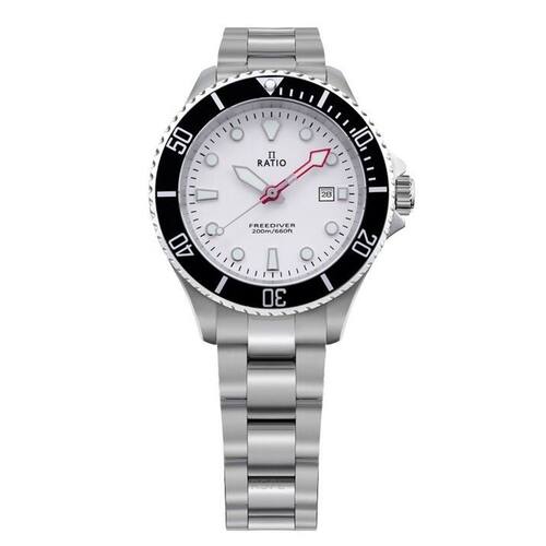 Relógio feminino Ratio FreeDiver Sapphire em aço inoxidável com mostrador branco de quartzo RTFL802 200M
