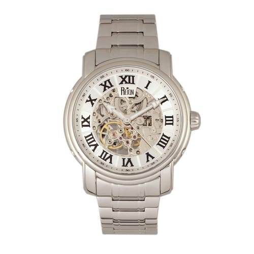 Reign Kahn Relógio de pulso automático com mostrador de esqueleto prateado, REIRN4301