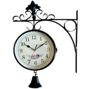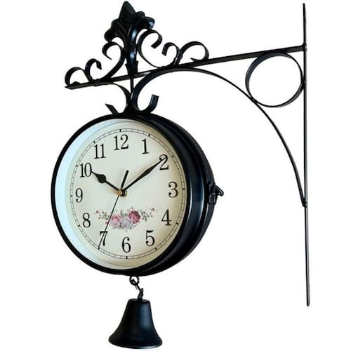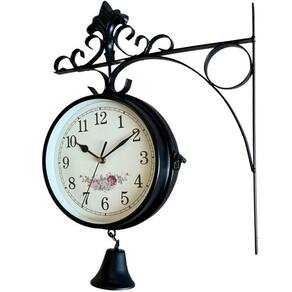 Relógio Retrô Com Sino Estação Trem Dupla Face Floral Preto -
