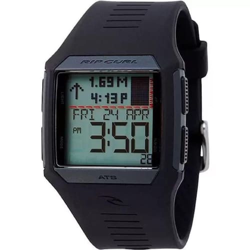 Relógio Rip Curl Rifles Tide Black A1119 - Tábua de Maré O mais desejado da linha surf, com tábua de maré. Com 500 praias pré-programadas, o display possui precisão na medição na amplitude da variação das marés, direção e indicação das marés futuras. Especificações Técnicas Maquinário 500 praias com marés pré-programadas. Visualização de maré detalhada. Dia, data, calendário, alarme, cronômetro e modo de descanso. Caixa Caixa ABS de policarbonato moldado, injetado, durável e leve. 41mm. 100m / 330ft à prova d'água testado. Pulseira Confortável e leve peça única sobre banda de poliuretano injetado moldado. Banda cônica de 35 mm a 25 mm com trava de segurança. Fivela forjada em aço inoxidável de qualidade marítima. Tamanho 41mm : 05 anos- Defeito de maquinário quando a troca de bateria é feita na RipCurl 02 anos - Vedação contra água Ean: 7909580118699