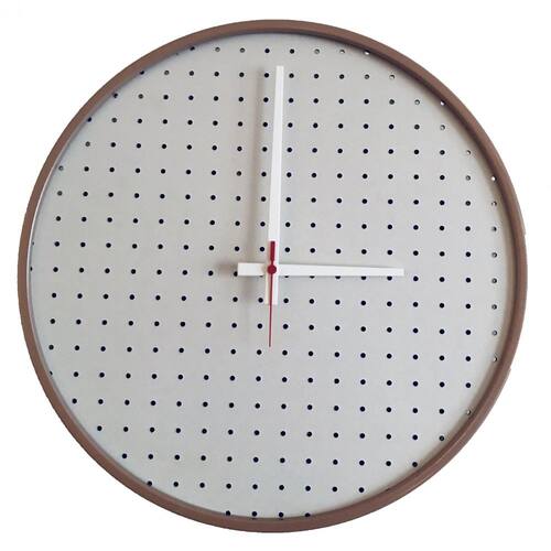 Relógio Round Marrom Mostrador Branco Perfurado 50 Cm Moldura em Alumínio que proporciona leveza ao produto, e permite acabamento em pintura epóxi-pó não enferruja .