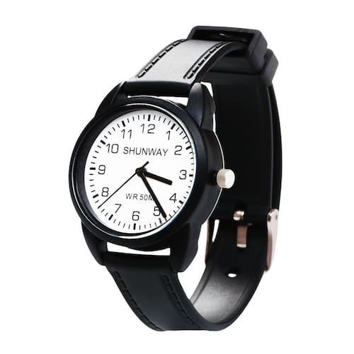 Relógio S582-01-1 Relógio de pulso analógico masculino com design clássico na cor preta. Possui mostrador branco com números grandes de fácil leitura, ponteiros precisos e pulseira confortável em silicone. Ideal para uso diário, trabalho ou lazer, combinando estilo simples e moderno. Resistente à água até 50 metros, adequado para atividades do dia a dia. Funcionamento por bateria. Marca: Não Informado