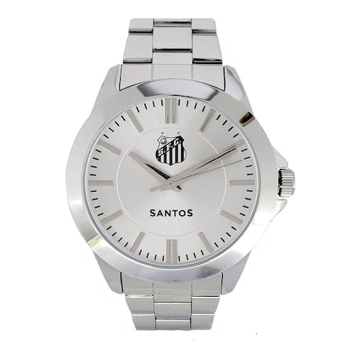 Mostrador prateado com escudo do Santos Futebol Clube