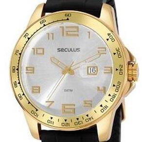Relógio Seculus Analógico Preto Masculino 44005GPSVDU2 Compre Relógio Seculus; Analógico, na cor preta, mais voltado ao público masculino, caixa peça onde fica o mostrador em aço e banhada na cor dourado, pulseira em silicone na cor preto, com resistência à água de até 5ATM/50M. Ean: 7909669039549