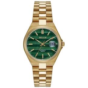 Relógio seculus automático 77313gpsvda4 Relógio automático com 21 joias e reserva de carga de 42h, construido todo em aço inoxidável, traz elegância e funcionalidade em um só acessório. Equipado com função calendário com luneta, oferece praticidade para o dia a dia. O fundo em vidro permite uma visualização do movimento interno, destacando a engenharia de precisão. O mostrador verde com efeito adiciona um toque contemporâneo ao design, complementado por uma caixa mediana de 40mm de diâmetro. A pulseira sólida com fecho borboleta garante conforto e um ajuste perfeito para todos os tamanhos de pulso. Este relógio é uma escolha indispensável para quem valoriza estilo e performance em um único acessório. Especificações técnicas Mecanismo: automático movimento miyota cal. 8215 - 21 joias reserva de carga de 42h Gênero: masculino Visor: verde com efeito Vidro: safira Funções: calendário com lupa Prova d'água: 50m Características: com caixa e pulseira em aço inoxidável, fecho borboleta e case back transparente. Diâmetro da caixa: 40 mm : 2 anos pela fabricante seculus Marca: Não Informado Ean: 7909669201397