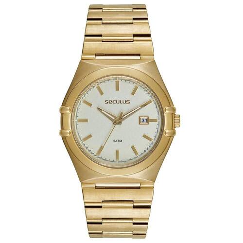 Estamos há mais de 50 anos no mercado oferecendo uma ampla variedade de acessórios, incluindo relógios e óculos de sol, com as melhores marcas e estilos. Além disso, a nossa equipe é treinada para oferecer um atendimento excepcional, garantindo que cada cliente seja tratado com o respeito e a atenção que merece.Realizando a compra, não deixe de nos avaliar Sua opinião é muito importante para aperfeiçoar cada vez mais o nosso trabalho.ESPECIFICAÇÕES TÉCNICAS- Marca: Seculus - Linha: Classic Masc - Referência: 44269GPSVDA1- Gênero: Masculino - Tipo de mostrador: Analógico - Tipo de movimento: Quartzo - Tipo de fecho: Acionamento lateral - Cor da caixa: Preto - Cor do mostrador: Branco- Cor da pulseira: Dourado- Material da caixa: Aço - Material da pulseira: Aço - Espessura da caixa: 4,0cm - Comprimento do relógio: 2,1cm - Largura da pulseira: 2,0cm - Resistência à água: 5 ATM 50m - : 24 meses Marca: Não Informado