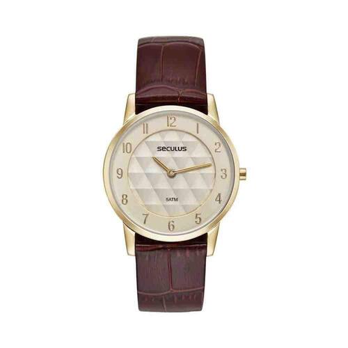 Estamos há mais de 50 anos no mercado oferecendo uma ampla variedade de acessórios, incluindo relógios e óculos de sol, com as melhores marcas e estilos. Além disso, a nossa equipe é treinada para oferecer um atendimento excepcional, garantindo que cada cliente seja tratado com o respeito e a atenção que merece.Realizando a compra, não deixe de nos avaliar Sua opinião é muito importante para aperfeiçoar cada vez mais o nosso trabalho.ESPECIFICAÇÕES TÉCNICAS- Marca: Seculus- Referência: 23725GPSVDC2- Gênero: Masculino- Tipo de formato: Redondo- Tipo de mostrador: Analógico- Tipo de movimento: Quartzo- Tipo de fecho: Fivela- Cor da caixa: Dourado- Cor do mostrador: Champagne- Cor da pulseira: Marrom - Material da caixa: Aço- Material da pulseira: Couro com textura croco- Largura da caixa: 3,8cm- Espessura da caixa: 1cm - Comprimento do relógio: 23cm - Largura da pulseira: 2,4cm - Resistência à água: 5 ATM 50m - : 24 meses Marca: Não Informado