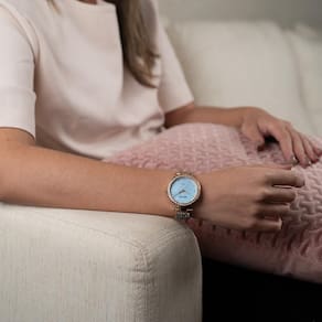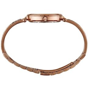 A pulseira em aço rosé com acabamento texturizado e aplicações de cristais garante destaque e modernidade, tornando-o ideal tanto para ocasiões especiais quanto para elevar a elegância no dia a dia. Além disso, possui resistência à água de 5 ATM, aliando estilo e praticidade.