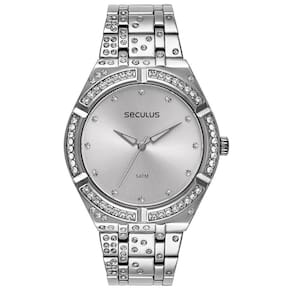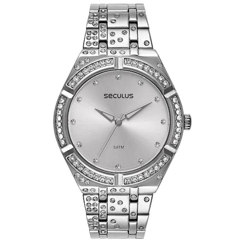 O Relógio Seculus 77306L0SVNB2 é um acessório imponente e sofisticado. Com caixa em aço prateado de 40 mm, ele apresenta um design moderno e luxuoso, reforçado pelo aro cravejado em cristais que proporciona brilho e destaque.
