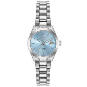 Mecanismo: Automático Movimento Miyota Cal. 6T15- 21 joias (reserva de carga de 40h) Gênero: Feminino Visor: Azul claro Vidro: Safira Funções: Calendário com lupa Prova d'água: 50m Características: Com caixa e pulseira em aço inoxidável, e case back transparente. Diâmetro da caixa: 28 mm Garantia: 2 anos pela fabricante Seculus