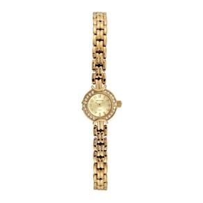 Vidro: cristal mineral Funções: bracelete, analógico Resistencia à água: 50 m Características: com caixa de aço inoxidável e pulseira de aço inoxidável Diâmetro da caixa: 1,5 cm Altura da caixa: 0,8 cm Fundo de pressão Linha: mini relógio, mosquitinho Alimentação do maquinário: bateria Mostrador champanhe com todos os números