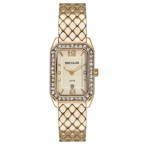 Relógio seculus feminino ref: 23711lpsvdb1 retangular dourado Descrição do produto: Vidro: cristal mineral Funções: analógico, calendário Resistencia à água: 50 m Características: com caixa de metal e pulseira de aço Diâmetro da caixa: 2,3 cm x 3,0 cm Fundo Alimentação do maquinário: bateria Mostrador champanhe com números Aro de pedras de 2 anos Marca: Não Informado Ean: 7909669125877