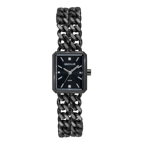 Relógio seculus feminino ref: 23735lpsvpa2 retangular bracelete black Descrição do produto: Vidro: cristal mineral Funções: analógico Resistencia à água: 30 m Características: com caixa de aço inoxidável e pulseira de aço inoxidável estilo bracelete Diâmetro da caixa: 2,0 cm x 2,4 cm Fundo Alimentação do maquinário: bateria Mostrador preto com pedras Mecanismo japonês de 2 anos