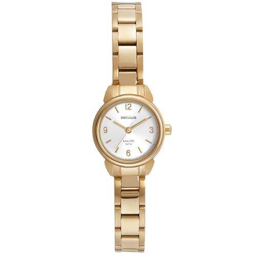 Relógio seculus feminino ref: 44135lpsvda1 clássico aço dourado Descrição do produto: Vidro: cristal mineral Funções: analógico Resistencia à água: 50 m Características: com caixa de aço e pulseira de aço Diâmetro da caixa: 2,3 cm Fundo rosqueado Alimentação do maquinário: bateria Mostrador prateado com números Linha: seculus long life de 2 anos Marca: Não Informado Ean: 7909669123538