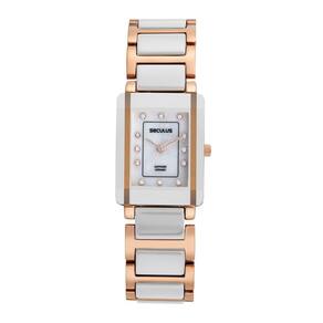 Características: com caixa de Metal e pulseira de Aço Inoxidável Rosé com Detalhes em Cerâmica Branca