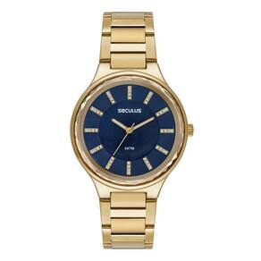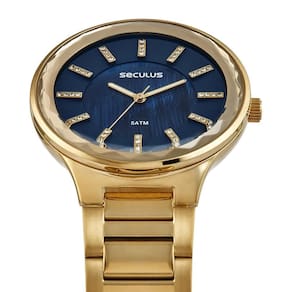 Relógio seculus feminino ref: 77253lpsvds2 dourado estojo bolsa Descrição do produto: Vidro: cristal mineral bisotê Funções: analógico Resistencia à água: 50 m Características: com caixa de metal especial e pulseira de aço inoxidável Diâmetro da caixa: 4,0 cm Fundo rosqueado Alimentação do maquinário: bateria Mostrador madreperola azul com pedras Estojo do relógio é uma bolsa exclusiva de material sintético e acompanha alça de 2 anos Marca: Não Informado