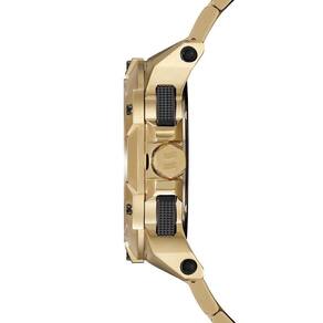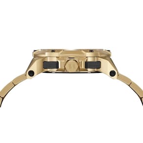 A pulseira em aço dourado com acabamento polido completa o visual imponente, oferecendo conforto e resistência. Um relógio sofisticado e funcional, perfeito tanto para ocasiões formais quanto para o uso cotidiano.