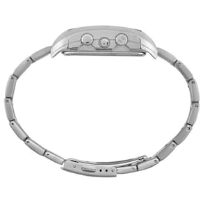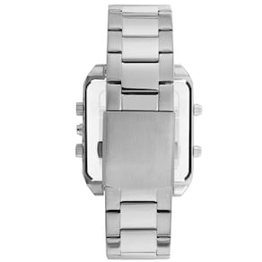 A pulseira em aço inoxidável prateado completa o design robusto, garantindo resistência e conforto. Com resistência de 5 ATM, este relógio é perfeito para acompanhar a rotina com estilo e eficiência.