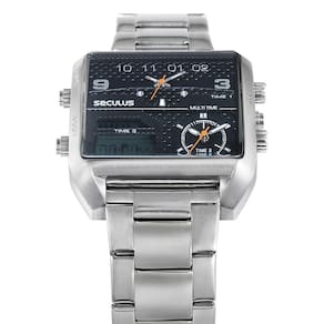 O Relógio Seculus 77161G0SVNA1 é moderno e multifuncional, ideal para homens que valorizam estilo e praticidade. Sua caixa retangular em aço prateado de 40x46 mm confere um visual arrojado, enquanto o mostrador preto texturizado agrega personalidade ao design.
