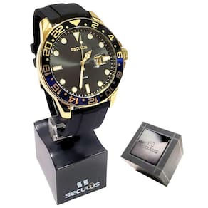 Marca: Seculus Modelo: 20902GPSVDU1 Tipo de relógio: Analógico Gênero: Masculino Cor da caixa: Dourado Cor da pulseira: Preto Estilo: Casual Alarme: Não Cronômetro: Não Calendário: Sim Luz: Não – ponteiros e marcadores fluorescentes Resistência à água: Sim – 5 ATM = 50 metros Tipo de fecho: Fivela Simples Material da Caixa: Aço Inoxidável Material da Pulseira: Silicone Características do vidro: Cristal Mineral Tamanho da caixa: 48 mm Espessura da caixa: 12 mm Peso: 110 g Comprimento da pulseira: 25 cm Largura da pulseira: 22 mm Tampa do fundo: Rosqueado Alimentação: Bateria Garantia do Fabricante: 12 meses Fabricante: Seculus da Amazônia Ind e Com S/A