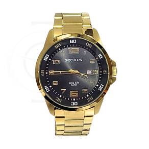 Marca: Seculus Modelo: 44011GPSVDA3 Tipo de relógio: Analógico Gênero: Masculino Cor da caixa: Dourado Cor da pulseira: Dourado Estilo: Casual Alarme: Não Cronômetro: Não Calendário: Sim Luz: Não Resistência à água: Sim – 5 ATM = 50 metros Tipo de fecho: Dobrável, com trava de segurança Material da caixa: Aço Inoxidável Material da pulseira: Aço Inoxidável Características do vidro: Vidro mineral Tamanho da caixa: 46 mm Espessura da caixa: 11 mm Comprimento da pulseira: 24 cm Largura da pulseira: 22 mm Tampa do fundo: Rosqueado Peso: 128 Gramas Alimentação: Bateria Garantia do Fabricante: 12 meses Fabricante: Seculus da Amazônia Indústria e Com S/A