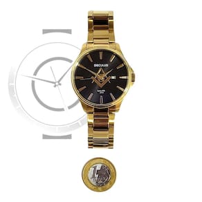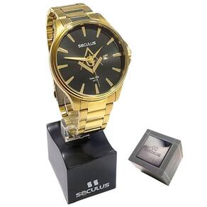 Marca: Seculus Modelo: 44116GPSVDA2 Tipo de relógio: Analógico Gênero: Masculino Cor da caixa: Dourado Cor da pulseira: Dourado Estilo: Casual Alarme: Não Cronômetro: Não Calendário: Sim Luz: Não Resistência à água: Sim – 5 ATM = 50 metros Tipo de fecho: Dobrável, com trava lateral Material da Caixa: Aço Inoxidável Material da Pulseira: Aço Inoxidável Tamanho da Caixa: 46 mm Espessura da caixa: 11 mm Comprimento da Pulseira: 24 cm Largura da Pulseira: 20 mm Peso: 119 gramas Tampa do fundo: Rosqueado Alimentação: Bateria Garantia do Fabricante: 12 meses Fabricante: Seculus da Amazônia Ind e Com S/A