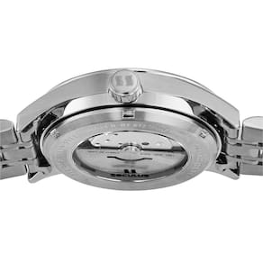 A pulseira em aço inoxidável possui construção sólida e fecho borboleta com botões laterais, garantindo segurança e conforto no uso. O fundo da caixa em vidro transparente permite visualizar o funcionamento do mecanismo interno, um detalhe que agrada apreciadores da relojoaria mecânica.