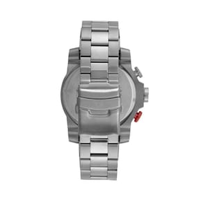 A pulseira deste relógio é fabricada em aço na cor prata, proporcionando durabilidade e resistência. Com 26 cm de comprimento, se ajusta perfeitamente ao seu pulso e possui fecho dobrável com trava, garantindo segurança e conforto durante o uso.