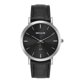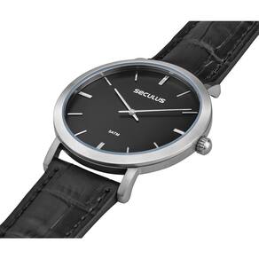 Relógio seculus masculino ref: 44255g0svnc1 clássico prateado Descrição do produto: Vidro: cristal mineral Funções: ógico, calendário Resistencia à água: 50 m Características: com caixa de aço inoxidável e pulseira de couro preta Diâmetro da caixa: 4,0 cm Altura da caixa: 0,8 cm Fundo de rosca Alimentação do maquinário: bateria Mostrador preto de 2 anos Marca: Não Informado