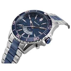 Relógio seculus masculino ref: 44270gpsvoa3 anadigi bicolor Descrição do produto: Vidro: cristal mineral Funções: cronógrafo, calendário, anadigi, alarme Resistencia à água: 150 m Características: com caixa de aço inoxidável e pulseira de aço inoxidável Diâmetro da caixa: 4,8 cm Fundo de rosca Alimentação do maquinário: bateria Mostrador azul Aro giratório azul Prateado com azul de 2 anos