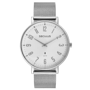 Relógio seculus masculino ref: 77181g0svna1 casual mesh prateado Descrição do produto: Vidro: cristal mineral Funções: analógico, calendário Resistencia à água: 50 m Características: com caixa de aço inoxidável e pulseira de malha de aço mesh Diâmetro da caixa: 4,4 cm Fundo de pressão Alimentação do maquinário: bateria Mostrador branco com todos os números Garantia de 2 anos
